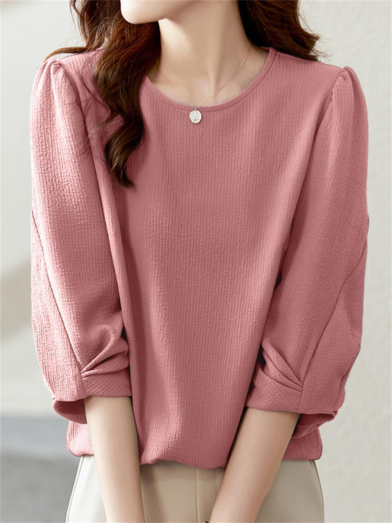 無地シンプル七分袖ブラウス クルーネックエレガントブラウス 婦人服